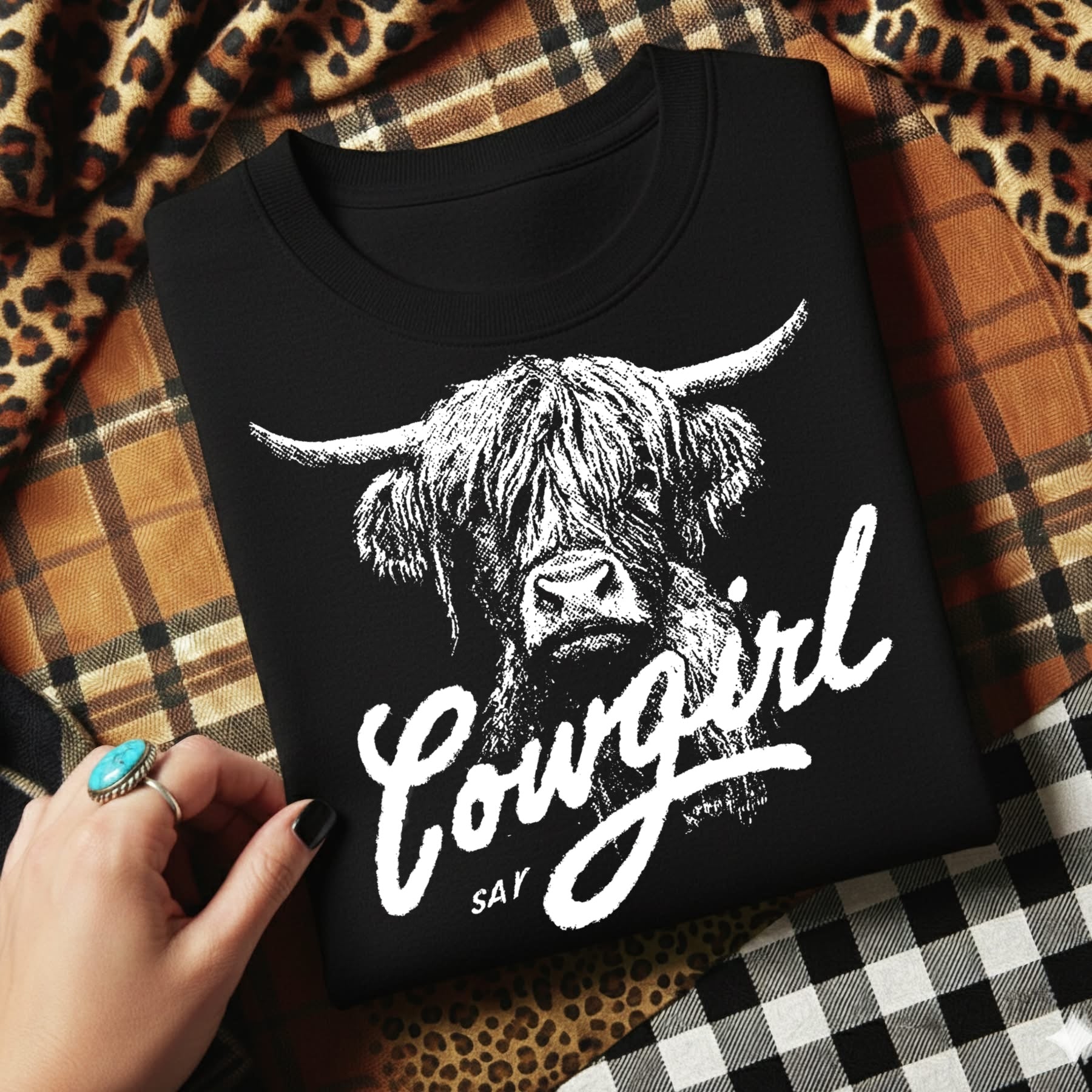 Highland cow half tone screen print transfer