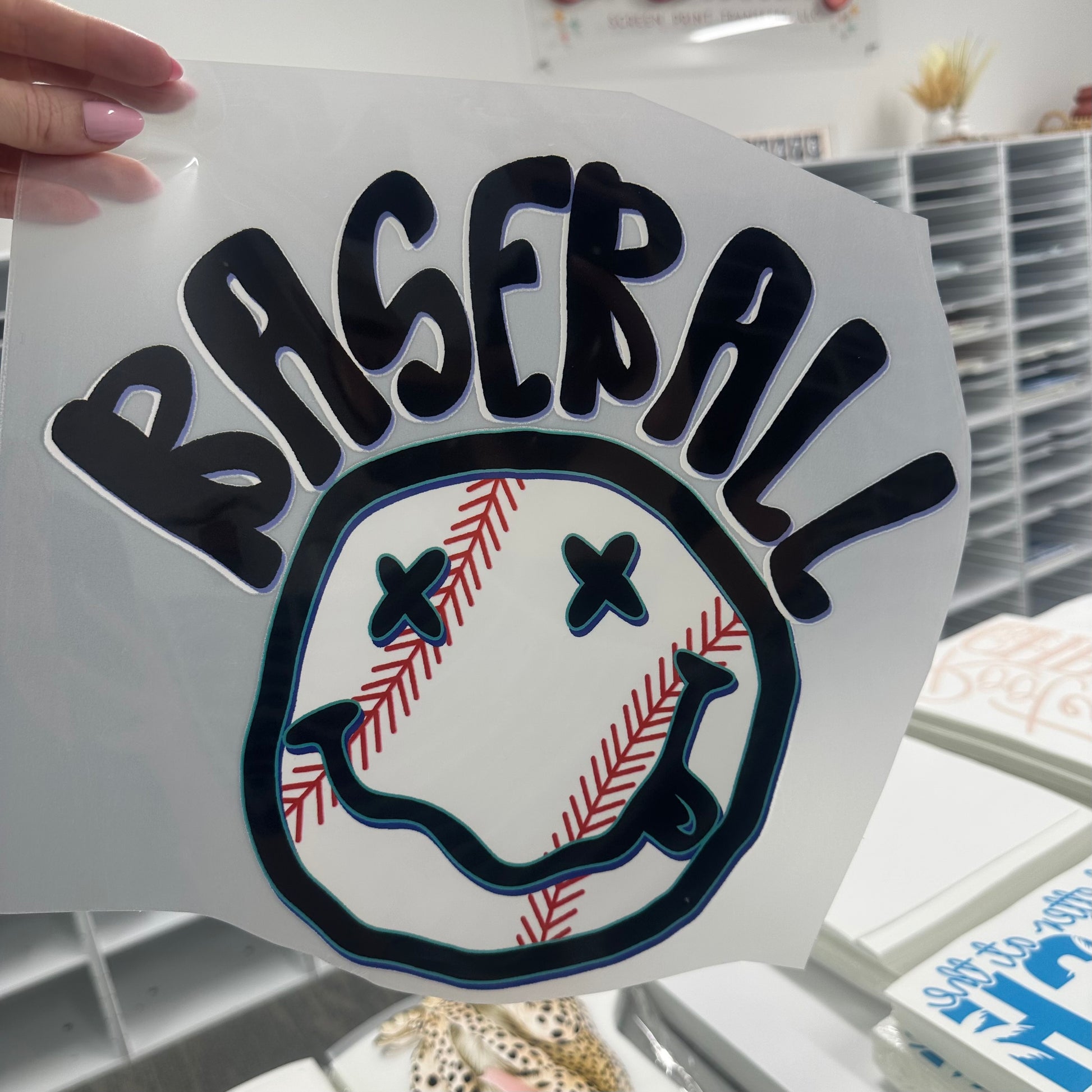 BASEBALL smile clear film screen print