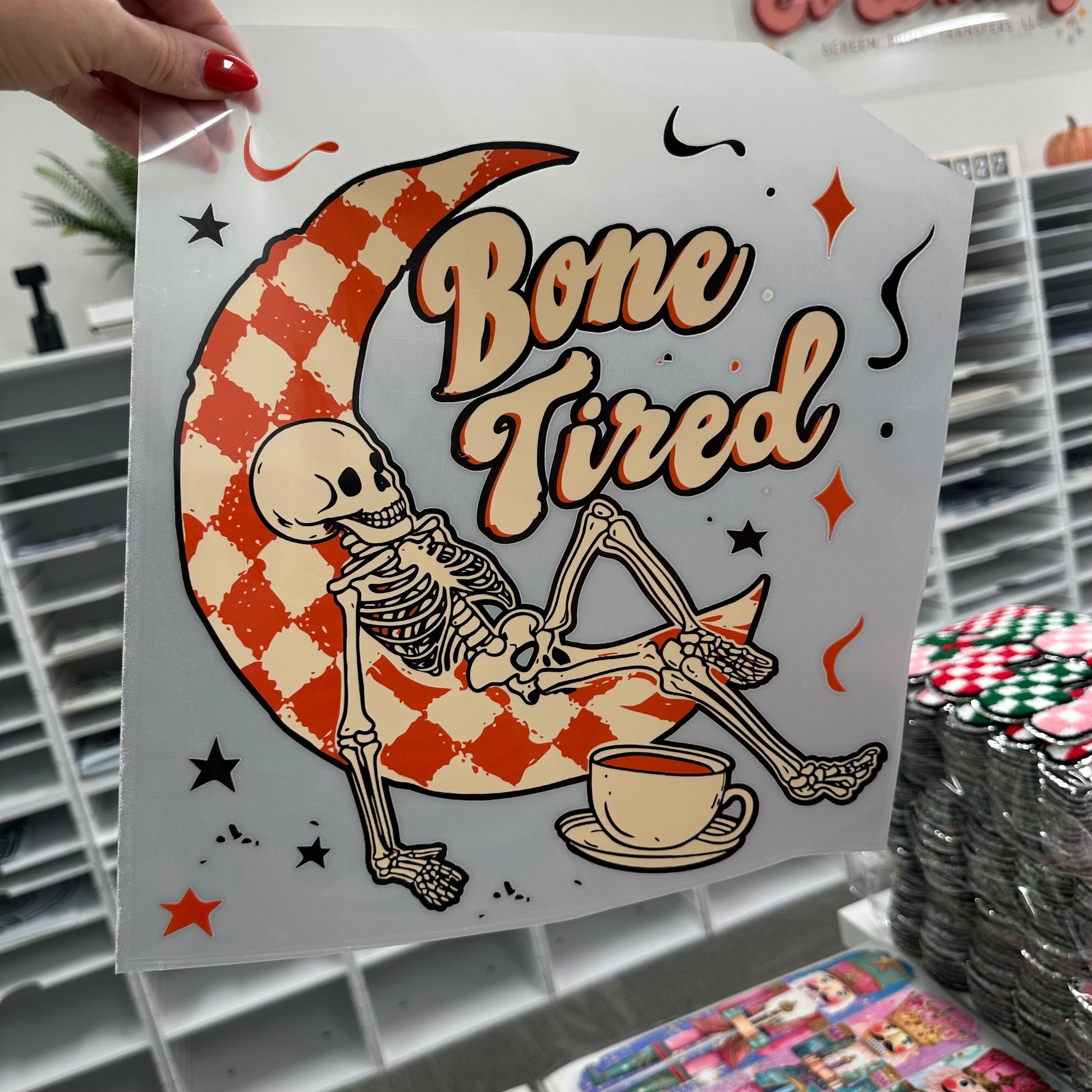 Bone Tired clear film transfer