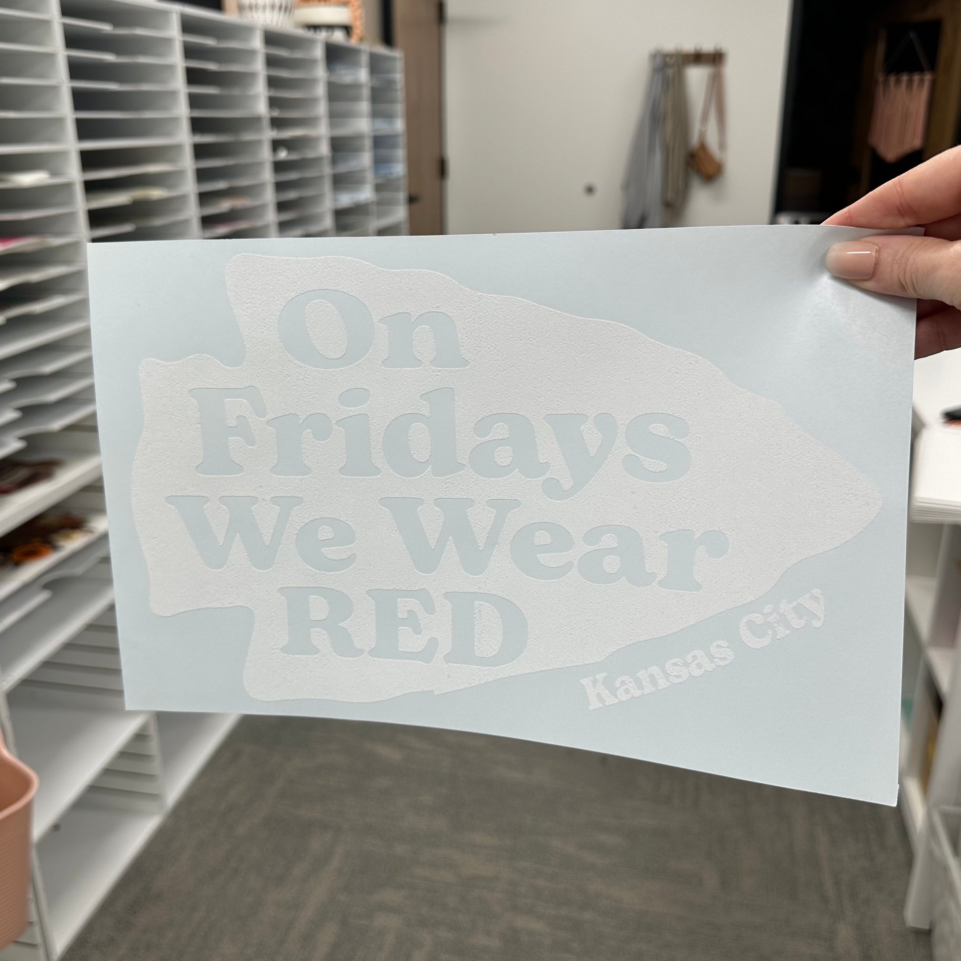 on Fridays we wear Red screen print transfer•