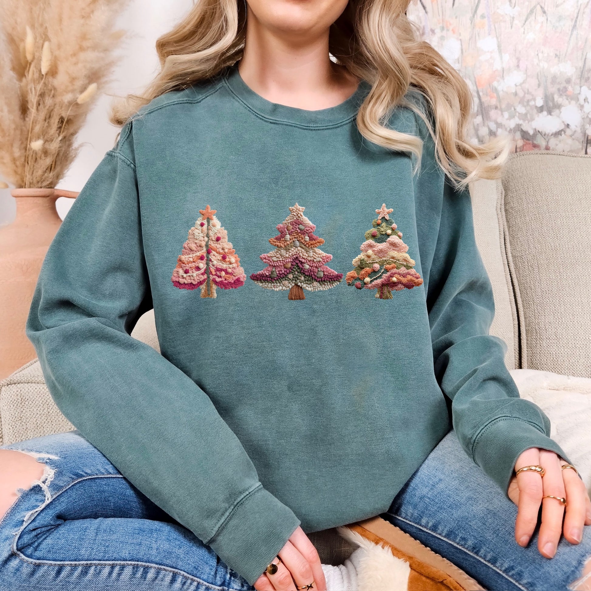 pink christmas trees faux yarn clear film screen print
